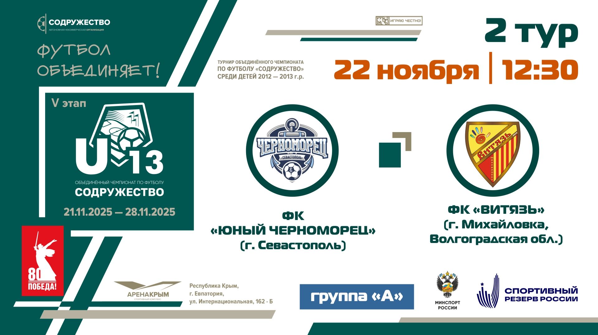 2 ТУР [Группа А] | ФК «Юный Черноморец» (Севастополь) - ФК «Витязь» (Волгоградская обл) | 22.11.25