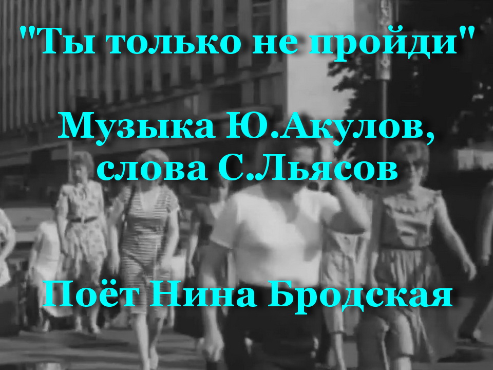 "Ты только не пройди" - Поёт Нина Бродская. Музыка Ю.Акулов, слова С.Льясов. Удачи!
