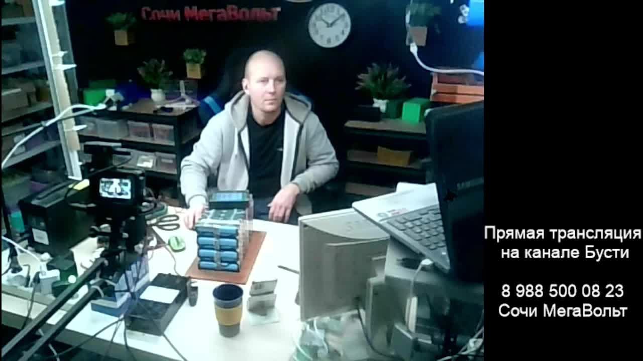 Здравствуйте. Трансляция рабочего стола... Трансляция с трёх камер и со звуком на канале Бусти. Там же можно задавать вопросы по аккумуляторам... что и как и зачем и почему..... Занимаюсь ремонтом и сборками аккумуляторов. Контактный телефон : 8 988 5000 823 Сергей ------------------------------------------------------- Полезное: Ссылка на видео : как подобрать и рассчитать никелевую ленту: https://boosty.to/sochi-megavolt/posts/75a42a0c-3f71-4776-95f4-e6d9515097d4?share=post_link Ссылка на объяснение про Бмс 14s 45a : https://boosty.to/sochi-megavolt/posts/3435c28c-93ec-434c-a8fc-28fc927bd8cd?share=post_link Кому интересно ремонтировать аккумуляторы и хотите понимать что нужно делать ... Ссылка на видео с подробными объяснениями и на канале Бусти Boosty: https://boosty.to/sochi-megavolt Также на Бусти в роликах " Полная версия" в описании ссылки на все компоненты для сборки аккумулятора. ----------------------------------------------------- Ютуб: https://youtube.com/@megavolt8331?si=8LNVOe55pBvcxDCy Ссылка на Дзен: https://dzen.ru/id/622731c5939d3b4e13b4546b Рутуб: https://rutube.ru/channel/38795736 Телеграм: https://t.me/SochMegaVolt Vk: https://vk.com/sochimegavolt Ok: http://ok.ru/video/c27594468 Ссылка на Авито с готовыми аккумуляторами: https://www.avito.ru/user/2986969b34d4e90b443edcb3294ef64a/profile?src=sharing -------------------------------------------------------- Буду благодарен за помощь... Донат: https://boosty.to/sochi-megavolt/donate