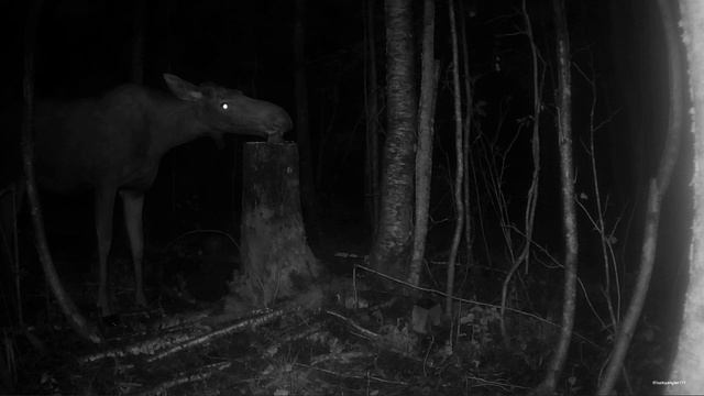 Ночная съемка лосей на солонце. Ленинградская область.