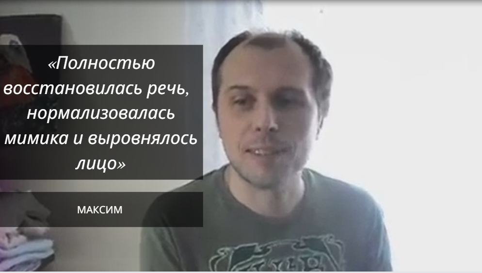 Клиент Максим, 37 лет. 17 января 2014 года, Максим находился на работе, когда ему вдруг резко стало плохо, перекосило левую половину лица и изменилась речь. Со слов Максима, прежде он был здоров и ни на что не жаловался. Максим обратился к неврологу, который по результатам МРТ поставил, под вопросом, диагноз рассеянный склероз и назначил комплекс витаминов. Для уточнения диагноза Максим был направлен в специализированную клинику, запись в которую была только через 10 дней. 18 января, на следующий день после события, чтобы не терять времени, Максим решил приехать к своей знакомой, специалисту метода Н. Лоскутовой БФМ, Тине Галиуллиной. Сказать внятно ничего не мог, речь резко ухудшилась. Максим был сильно напуган своим состоянием, позднее сказал, что ехал не на сеанс, а больше за дружеской поддержкой. Тина, связалась с автором метода Надеждой Лоскутовой, чтобы получить необходимые рекомендации для такого сложного случая, и тут же начала проводить с Максимом первый сеанс. Первые три сеанса Максим ничего не чувствовал и спал. Во время четвёртого сеанса у него появились первые ощущения в руках. После 4 сеанса был три дня перерыв, тут важно, что Максим смог отследить разницу "с БФМ" и "без БФМ". После сеансов, они проходили по утрам, тело продолжало восстанавливаться, Максим принимал рекомендованный горячий душ и крепко спал по 3-4 часа. В итоге за три недели было интенсивно проведено 14 сеансов подряд. Тина вела записи о работе с Максимом на форуме Центра Н. Лоскутовой, о том, как проходят сеансы, как реагирует клиент и какие результаты получает. Отчеты всегда сопровождались краткими видео интервью с Максимом. Эти записи давали возможность Надежде Леонидовне, при необходимости, вносить коррективы в работу с клиентом. В результате после 8 сеанса у Максима полностью восстановилась речь, а после 12 сеансов нормализовалась мимика и выровнялось лицо. Через 10 дней после начала курса Максим поехал на приём в Специализированную клинику к неврологу. После осмотра врач констатировал следующее – «Посмотрите сами, как же хорошо вам помогли правильно подобранные витамины! Речь практически восстановилась, лицо ровное, отличный результат! А главное, быстро!». Но, Максим витамины не только не принимал, он их даже не успел приобрести за эти 10 дней.