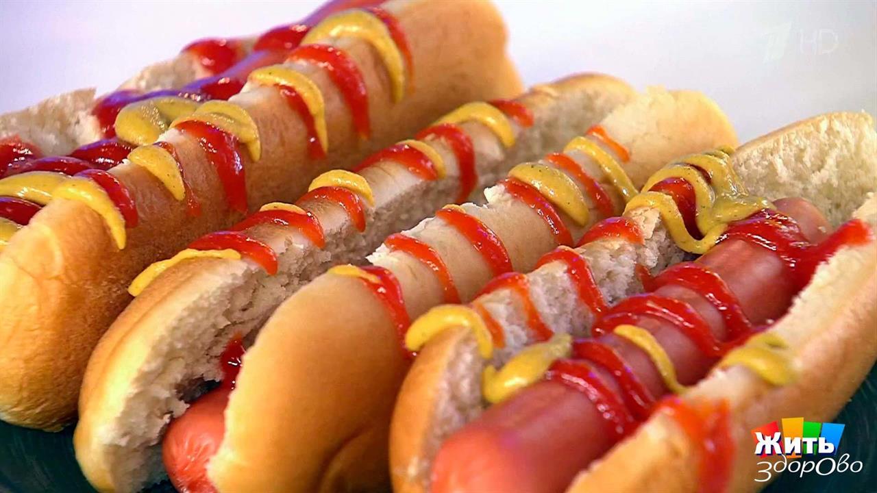 Хот-дог — булка с сосиской, политая кетчупом и горчицей — традиционный американский фастфуд, который популярен и в России. Насколько вредна такая «быстрая еда» для здоровья, и почему стоит попросить продавца не добавлять в хот-дог кетчуп? Полный выпуск смотрите здесь ﹥﹥