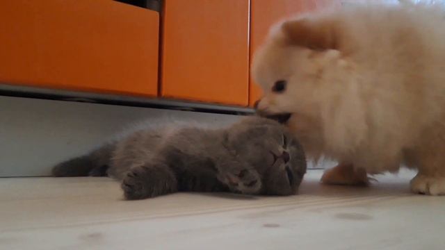Буся-померанский шпиц Бакс-британский кот