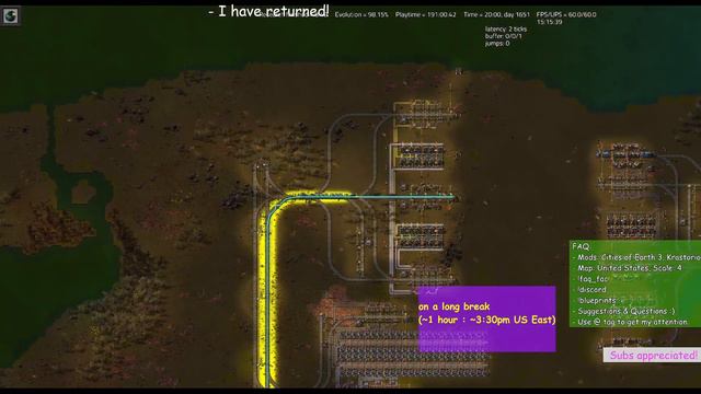 My playthrough of Krastorio 2 on Cities of Earth in Factorio. www.twitch.tv/hy_speed # Mod List for Play Through of Cities of Earth 3 w/ Krastorio 2 ## Overhaul & Items - [Beautiful Bridge Railway for Cargoships](https://mods.factorio.com/mod/beautiful_bridge_railway_Cargoships) - [Fluid Must Flow](https://mods.factorio.com/mod/FluidMustFlow) - [Krastorio 2 Assets](https://mods.factorio.com/mod/Krastorio2Assets) - [Krastorio 2](https://mods.factorio.com/mod/Krastorio2) - [Reverse Factory](https://mods.factorio.com/mod/reverse-factory) ## Terrain - [Alien Biomes High-Res Terrain](https://mods.factorio.com/mod/alien-biomes-hr-terrain) - [Alien Biomes](https://mods.factorio.com/mod/alien-biomes) - [Cities Of Earth 3](https://mods.factorio.com/mod/CitiesOfEarth3) - [Color Coding Plus](https://mods.factorio.com/mod/color-coding-plus) ## Quality of Life & Behavior - [Artillery Bombardment Remote](https://mods.factorio.com/mod/artillery-bombardment-remote) - [Drop Or Destroy On Death](https://mods.factorio.com/mod/DropOrDestroyOnDeath) - [Inventory Repair](https://mods.factorio.com/mod/inventory-repair) - [Trains Switch to Manual at Temporary Stops](https://mods.factorio.com/mod/manual-trains-at-temp-stops) - [Mower](https://mods.factorio.com/mod/Mower) - [NiceFill](https://mods.factorio.com/mod/nicefill-scriptfix) - [Picker Dollies](https://mods.factorio.com/mod/PickerDollies) - [Player Request Crafting Layout](https://mods.factorio.com/mod/player_request_crafting_layout) - [Rate Calculator](https://mods.factorio.com/mod/RateCalculator) - [Remote Constant Combinator Toggle](https://mods.factorio.com/mod/rcct) - [Recipe Book](https://mods.factorio.com/mod/RecipeBook) - [Scooty's Armor Swap](https://mods.factorio.com/mod/scootys-armor-swap) - [Squeak Through](https://mods.factorio.com/mod/Squeak%20Through) - [VehicleSnap](https://mods.factorio.com/mod/VehicleSnap) ## Visibility - [Afraid Of The Dark](https://mods.factorio.com/mod/AfraidOfTheDark) - [Artillery Visibility](https://mods.factorio.com/mod/artillery-visibility) - [BIG LIGHT](https://mods.factorio.com/mod/BigLight) - [Blue Ghosts](https://mods.factorio.com/mod/Blue-Ghosts) - [Bottleneck Lite](https://mods.factorio.com/mod/BottleneckLite) - [Bullet Trails](https://mods.factorio.com/mod/bullet-trails) - [Capsule Warning](https://mods.factorio.com/mod/capsule-warning) - [Enhanced Map Colors](https://mods.factorio.com/mod/Enhanced_Map_Colors) - [Glowing Trees](https://mods.factorio.com/mod/glowing_trees) - [Inbuilt Lighting](https://mods.factorio.com/mod/inbuilt_lighting) - [Stats GUI](https://mods.factorio.com/mod/StatsGui) - [Train Trails](https://mods.factorio.com/mod/train-trails) - [Train Saver](https://mods.factorio.com/mod/trainsaver) - [Train Sticker](https://mods.factorio.com/mod/TrainSticker) - [Vibrant Trains](https://mods.factorio.com/mod/vibrant-trains)