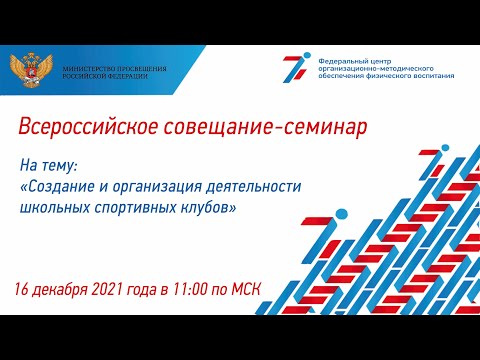 16 декабря 2021 года в 11:00 состоялся совещание-семинар на тему «Создание и организация деятельности школьных спортивных клубов» в формате ВКС с представителями субъектов Российской Федерации по вопросам развития физической культуры и спорта в системе образования Российской Федерации.