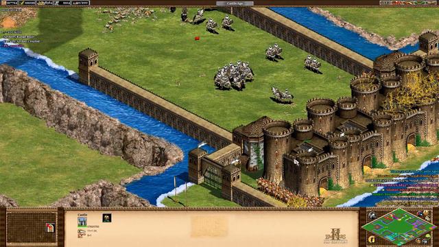 The Mongols - definitely one of the most fun civs on this map. _________ CBA, sometimes called Castle Blood Automatic or Castle Blood Arena, is the most historically popular custom scenario in Age of Empires II multiplayer. It's generally played as a 4v4 with random civs. Players start with a population-limited spawn of their civilization's main unique unit and must defeat others by destroying their four starting castles. Razing buildings gives players villagers while getting kills allows them to progress through the ages. Players start with 4 castles and 3 front gates which are usually the first target for razes (and cannot be deleted without the deleting player being kicked). Long games generally transition away from the starting unique units and into the permitted standard units like paladins, heavy camels, arbalests, rams and cavalry archers.
