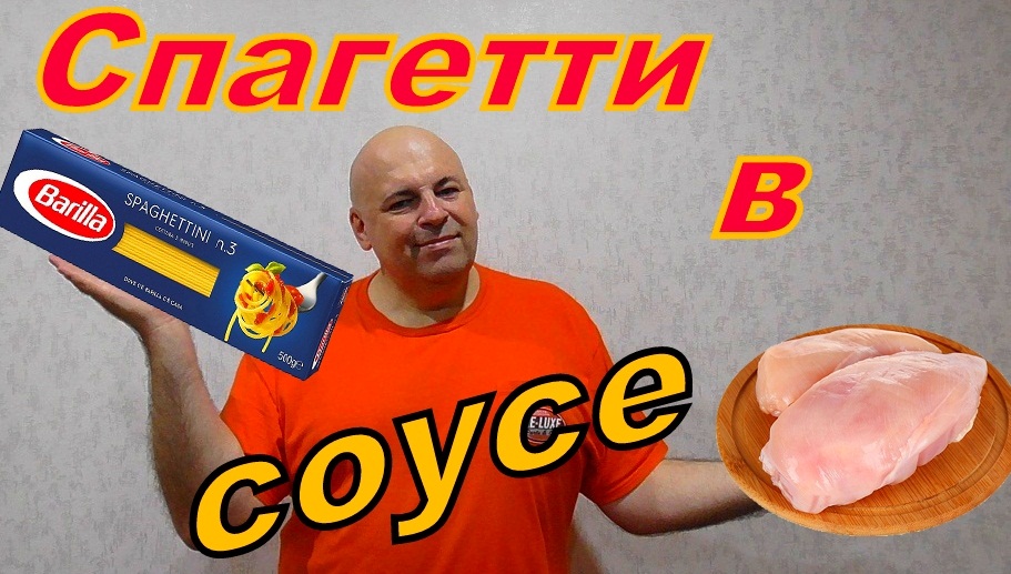 Паста в чесночно сливочном соусе с курицей и сыром.