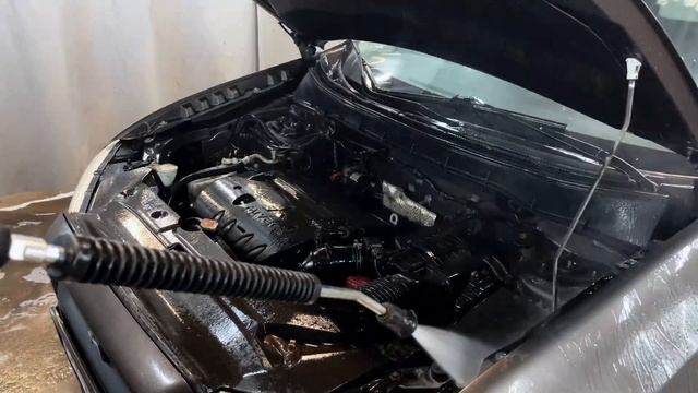Двухфазная мойка двигателя и подкапотного пространства составами Space Cosmetics: проверяли на собственном авто! Начинаем с нанесения безопасного для двигателя диэлектрика Meteor. Благодаря отсутствию воды в составе имеет очень низкую электропроводность. Густая консистенция позволяет средству дольше находиться на деталях. Состав не содержит щелочи, безопасен для пластика и металла. https://avtorefinisher.ru/materialy_po_uhodu_za_avto/ochistitely/sredstvo_dlya_moiki_dvigatela_space_cosmetics_meteor/ Важно наносить состав на остывший двигатель. Даем поработать составу в течение 5 минут, далее при помощи кисти чистим въевшуюся грязь, особенно на труднодоступных участках. Этой процедуры можно избежать если двигатель моется систематически, в нашем случае загрязнения значительные. После механической чистки, смываем состав водой. Мы использовали мойку высокого давления, можно обойтись естественным напором воды. Далее сушим турбосушкой. Следующий шаг: консервант для двигателя Emission. Состав разработан для придания эстетических и защитных свойств подкапотному пространству после мойки. Средство образует защитную гидрофобную пленку, тем самым препятствуя появлению грязи и влаги, окислению проводки и контактов. https://avtorefinisher.ru/materialy_po_uhodu_za_avto/materialy_dlya_detejlinga/konservant_dlya_dvigatela_space_cosmetics_emission/ Распыляем состав на поверхность и ждем высыхания 5-10 минут, после чего растираем состав при помощи чистой микрофибры. Составы сработали отлично! Мы довольны как результатом, так и эффектом спустя несколько дней после мойки. Мы рекомендуем использовать оба средства для достижения максимального результата и закрепления эффекта. Отдельно хотим поблагодарить детейлинг-студию DePro (https://vk.com/depro98) за профессиональное нанесение составов и блестящую мойку двигателя.