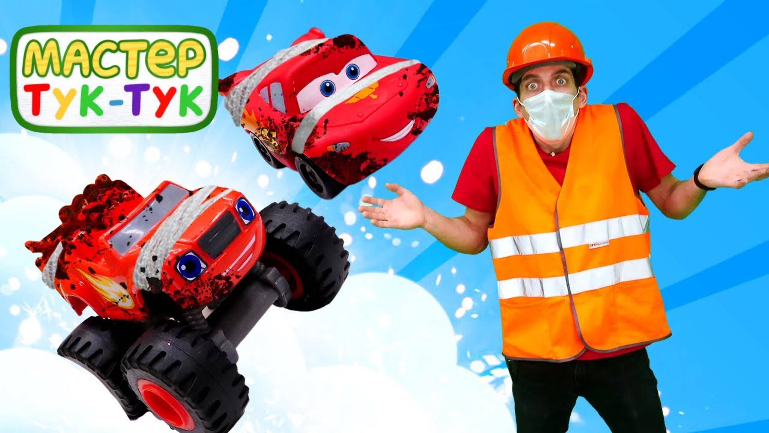 Машинки заболели? Молния Маквин и Вспыш на автомойке — Мастер Тук тук. Видео для детей