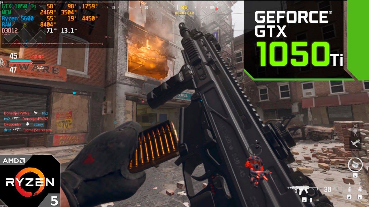 Call of Duty : Modern Warfare 3 : GTX 1050 Ti + Ryzen 5600 : 1080p - 900p - 720p Low Settings +FSR