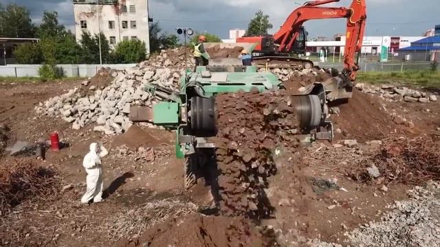 Наша мобильная дробилка для железобетона в работе