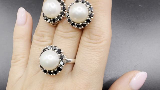 ЖЕМ066 Комплект с жемчугом и черной шпинелью