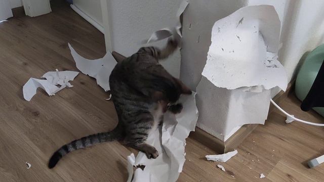 кот испортил обои