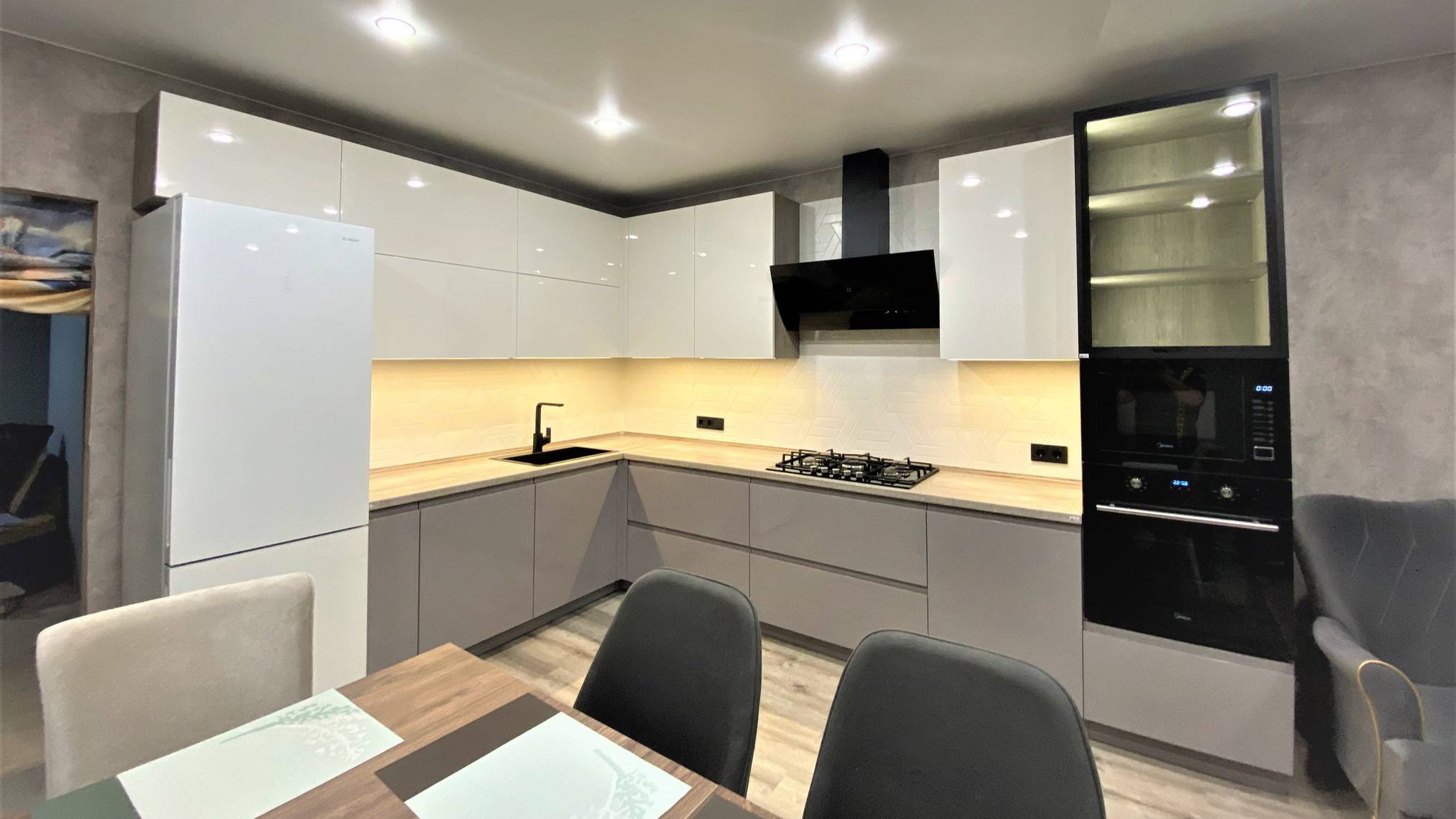 Мэй - встроенная угловая глянцевая кухня на заказ в Москве, Владимире, Иванове, Балашихе, Реутове