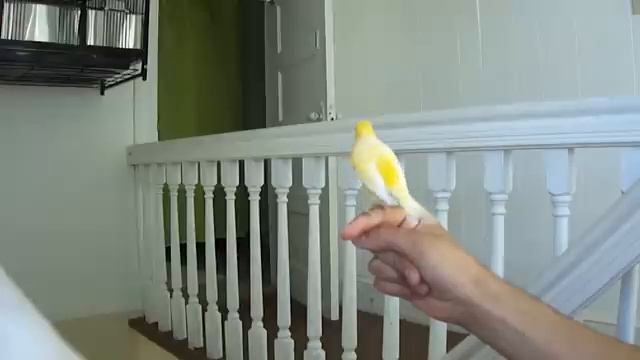 Canary singing on my hand.mp4