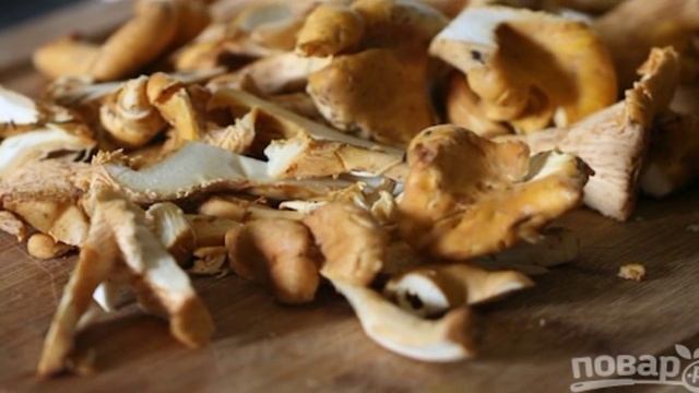 Жареные лисички с чесноком