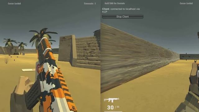 Online fps game i've been working on for about 5 days. Since the game on the left is the host and the game on the right is remote, I can only control the player on the left because I am on the same computer. When you enter the game from different computers, there is no problem. It's pretty hard to make an online fps game indie :) Background Music = This is Grand Cathedral [Corridor of Death] Music from the game Serious Sam the Second Encounter. Music and game owned by Croteam