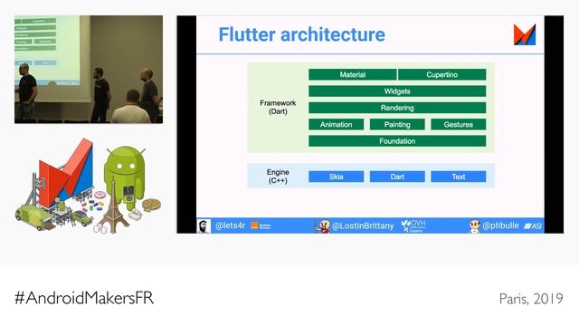 This session was given at Paris Android Makers 2019 by Pierre Tibulle undefined (ASI), Romain Rastel undefined (Orange Business Services) and Horacio Gonzalez undefined (OVH). More info: http://androidmakers.fr/schedule/?sessionId=RBU-3913 What’s that Flutter everybody in mobile development is talking about these days? Another new thing that will be forgotten by this time next year or a true revolution in mobile apps development? Is it really worth my time? Flutter is Google's mobile SDK for crafting high-quality native interfaces on iOS and Android in record time. Flutter works with existing code, is used by developers and organizations around the world, and is free and open source. Beyond the commercial pitch, in this codelab you will create a simple Flutter app and discover the features that make Flutter one of the most pleasant and productive development platform. You need to bring your own laptop and validate the following steps : * https://flutter.io/docs/get-started/install * https://flutter.io/docs/get-started/editor * https://flutter.io/docs/get-started/test-drive The demo app is running on your simulator? Let's go with Flutter!!! NB: We can speak in French or in English. Alex Karp Production