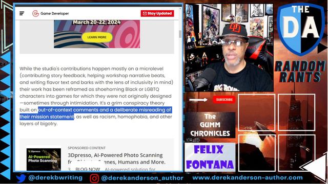 They're getting desperate folks. Sweet Baby Inc is on the run, looking for help from gaming journalists and game developers. CEO Kim Belair, in an interview with Game Developer, lowkey begged the world at large to do something about these Steam and Discord groups that dare to speak out against their inclusion-focused company, saying "some kind of evolution is needed" to silence these people. Rather than actually taking stock of what went wrong with her business model and focusing on making changes....nah, its just easier to cancel the naysayers. This won't end well for them. *** Check out my novels: The Gumm Chronicles - https://www.amazon.com/dp/B01DRI7WF2 The Fortunes of Felix Fontana - https://www.amazon.com/dp/B093YZTP3H Check out my TeePublic Merch Store: The DA's Merch Store - https://www.teepublic.com/user/the-d-a #videogames #sweetbabyinc #gaming