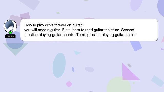 How to play drive forever on guitar? A brief presentation of myself, Hello, I am Delphi. Allow me to provide support in answering your questions. - How to play drive forever on guitar? If you have specific questions that need answers, please don't hesitate to comment or chat with me. Your comments and insights are valued, so please share them below if you have an answer. I will express my appreciation for your answer by 'hearting' it. *2 What we are experimenting :* To see what we are experimenting, On Google, Search for "hows tech innovations"