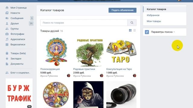 Продажа товаров и услуг со страницы Вконтакте