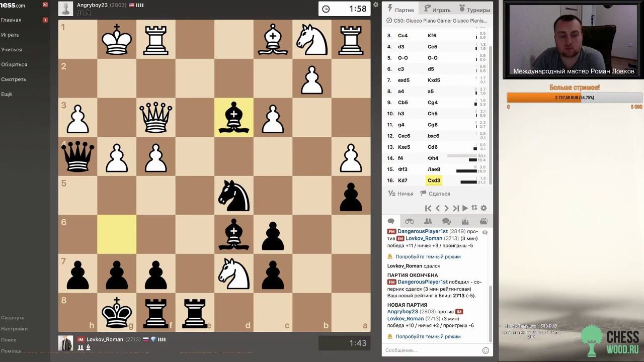 Лучшее со стримов № 007. Итальянская партия. Атака в стиле Маршалла