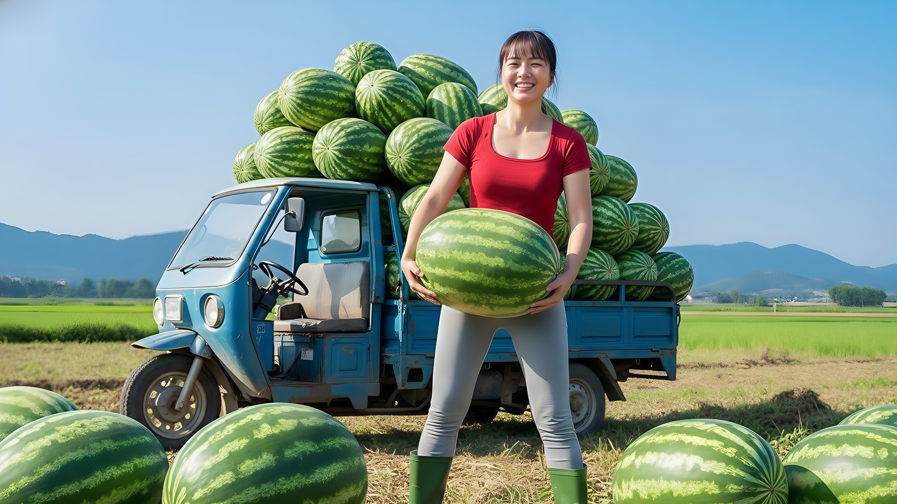 Собрала тонну арбузов и везу на грузовике на сельский рынок продавать. Фуонг. Вьетнам