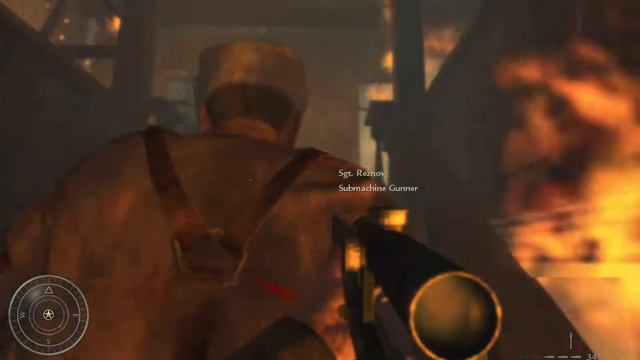 Playing as Dimitri Petrenko, assist the injured Sgt. Reznov in assassinating the Nazi General Amsel.