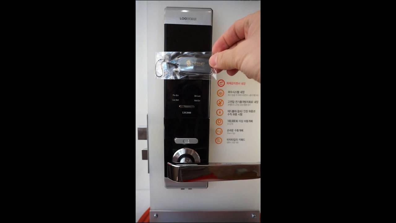 Электронный замок LH-2000 для входных дверей от корейского производителя Evernet. Работает от батареек формата АА. Отпирает с помощью кода (пароля), карты RF, брелока, механического ключа. Звучит сигнал при пожарной опасности, также звуковой сигнал при разрядке батареек с запасом эксплуатации на 30 дней. При полной разрядке батареек есть возможность отпирания от аккумулятора типа "крона".