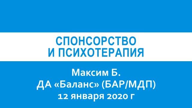 Максим Б Спонсорство и психотерапия ДА Баланс БАР 12 января 2020 г