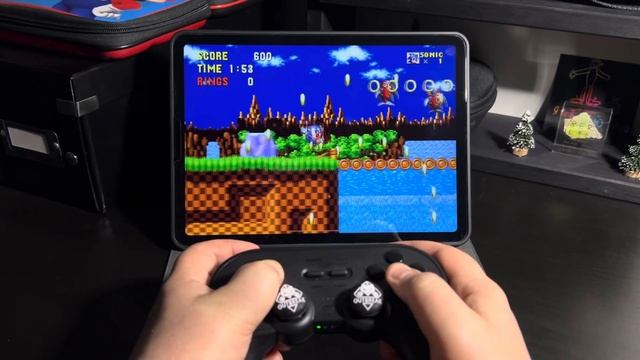 Playing Sonic the Hedgehog classic on Apple IPad Air with 8 BitDo gamepad.
