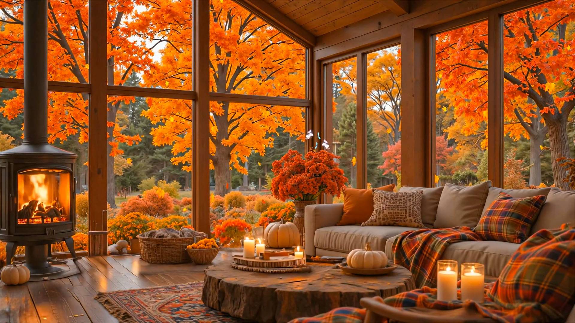 Осень у панорамных окон 🍁 Уютный камин и Джаз на фоне 🔥🌿