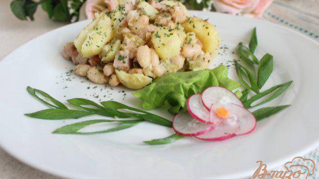 Горячий салат из молодого картофеля с ветчиной и фасолью