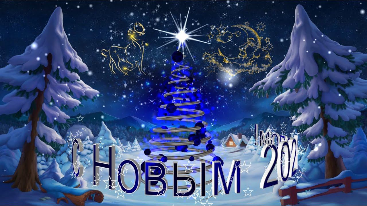 Шикарное новогоднее 3D поздравление С НОВЫМ 2021 ГОДОМ! Волшебная ёлка на заснеженной лесной полянке
