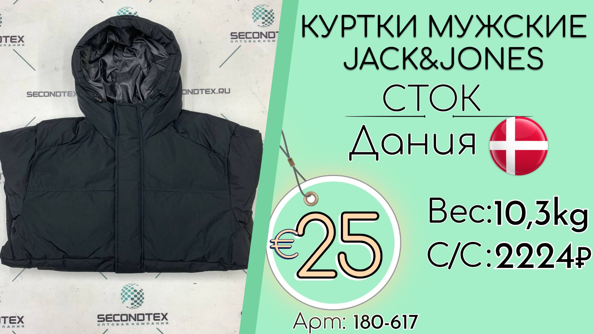 Страна: Дания Вес мешка: 10,3 кг Цена за кг: Евро 25 / Рубли 2 375 Цена за мешок: 24 463 руб. Себестоимость одной вещи: 2 224 руб. Кол-во штук: 11 шт. ____ 💰 Курс на дату съемки (25.11.2025): €1 = 95 Руб. (при наличных и безналичных платежах) 💳 €1 = 95 Руб. (при безналичной форме оплаты на р/с) Связаться с нами: +7(916)779-79-79 (WhatsApp, Telegram) Наш сайт: https://secondtex.ru Instagram: https://instagram.com/secondtex.opt Мы ВКонтакте: https://vk.com/secondtex