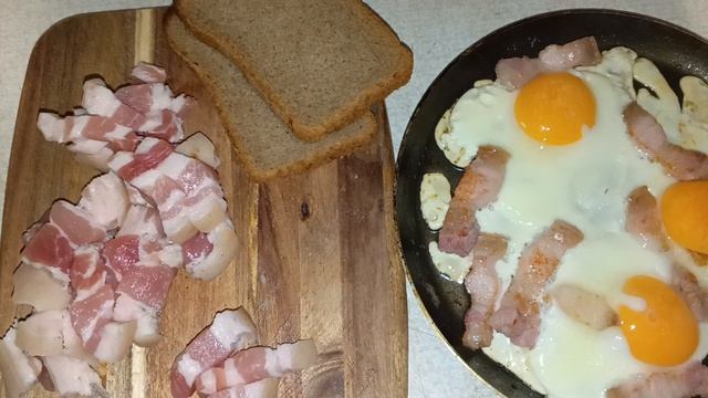 Яичница с салом приготовленная на печи.