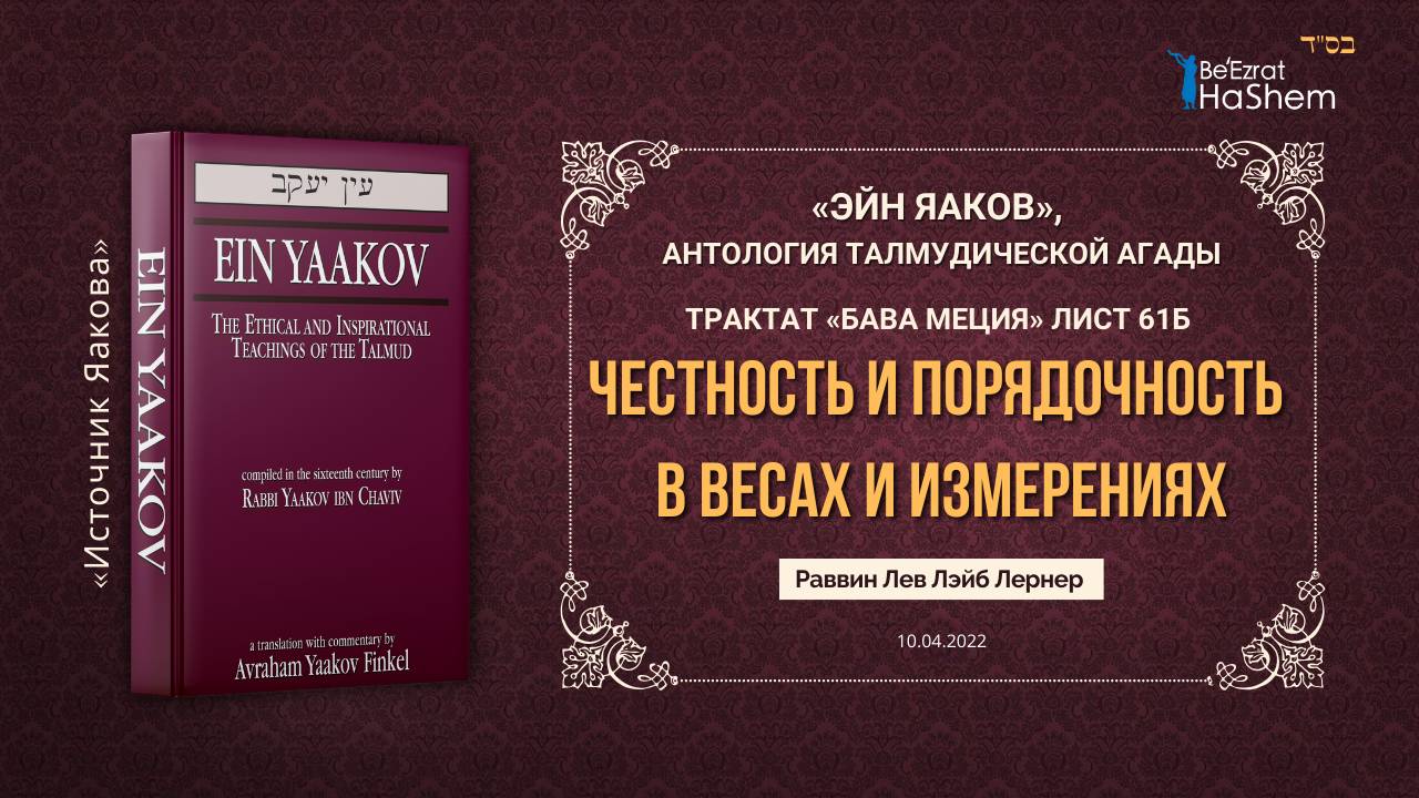 «Эйн Яаков» | Честность и Порядочность в Весах и Измерениях | Рабби Лев Лэйб Лернер