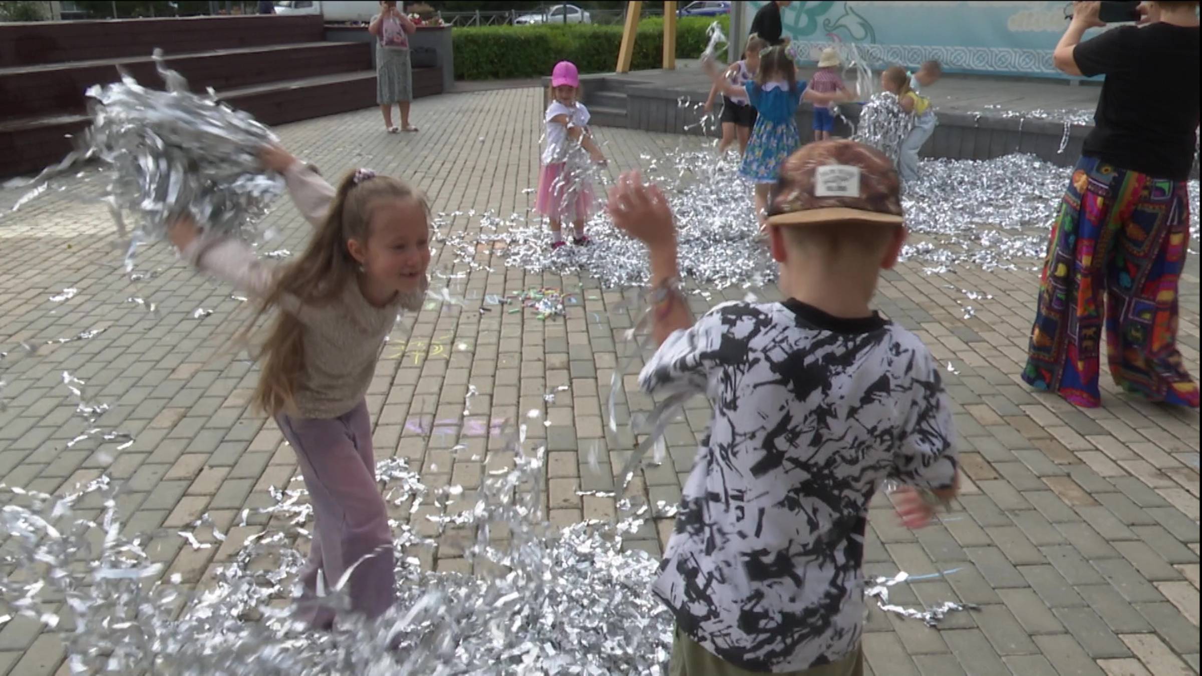 В сквере “Музыкальный” дети танцевали под дождем из мишуры