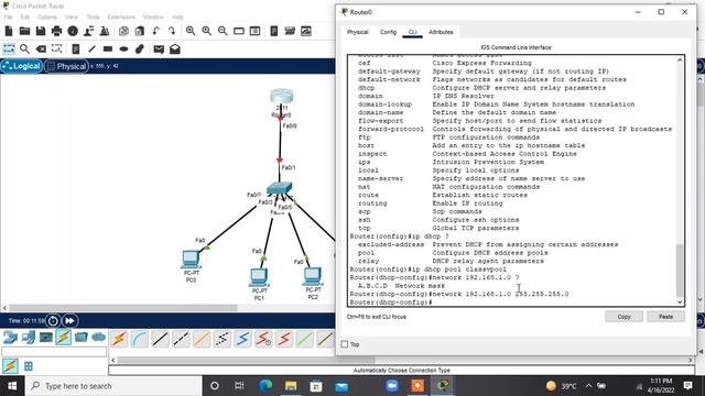 In this video we have discussed about " How to configure the DHCP Server at the router level so that all the end devices can get an Ip address from the DHCP Pool. We have also seen how can we exclude certain IP's from the DHCP pool so that these ip can be assigned to certain devices manually. If you guys have any doubt then please feel free to ping me for more clarifications. Thanks for watching my videos and have a great day ahead !!!