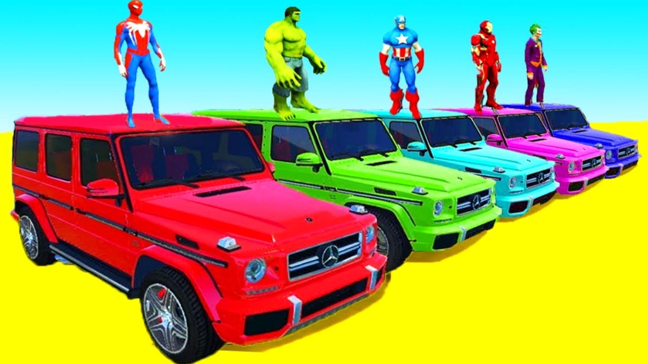 Мультфильмы для детей Человек-паук с супергероями и цветными внедорожниками Мультики про машинки