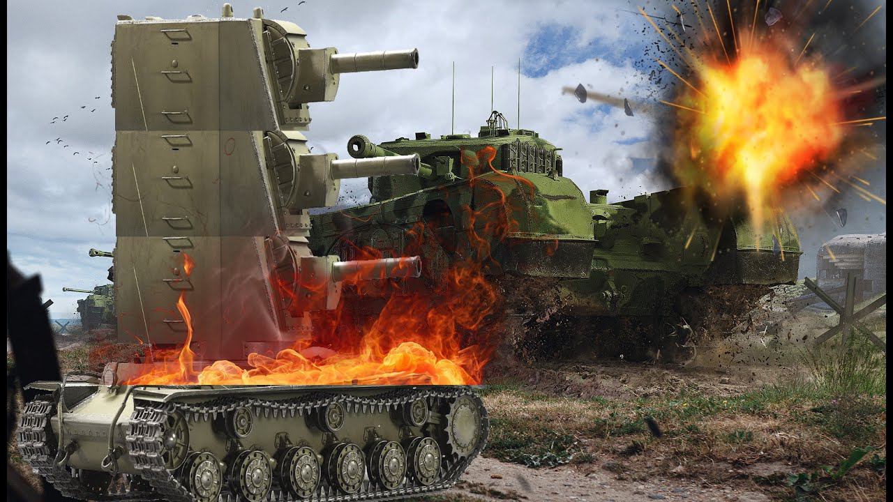 Churchill VII против 3-х фугасных башен КВ-2. Захватывающий поединок тяжёлых танков