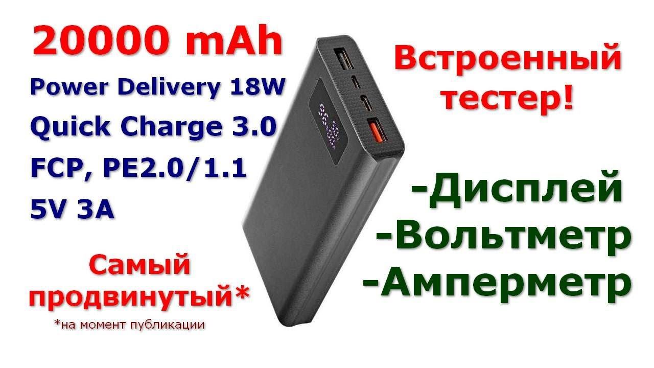 Внешний аккумулятор с поддержкой быстрой зарядки Quick Charge, Power Delivery, FCP, PE2.0/1.1. Информативный дисплей с вольтметром и амперметром. В этом видео полный обзор и тесты портов USB QUMO PowerAid T20000 QC/PD. Использовался тестер --- http://ali.pub/31eo3q