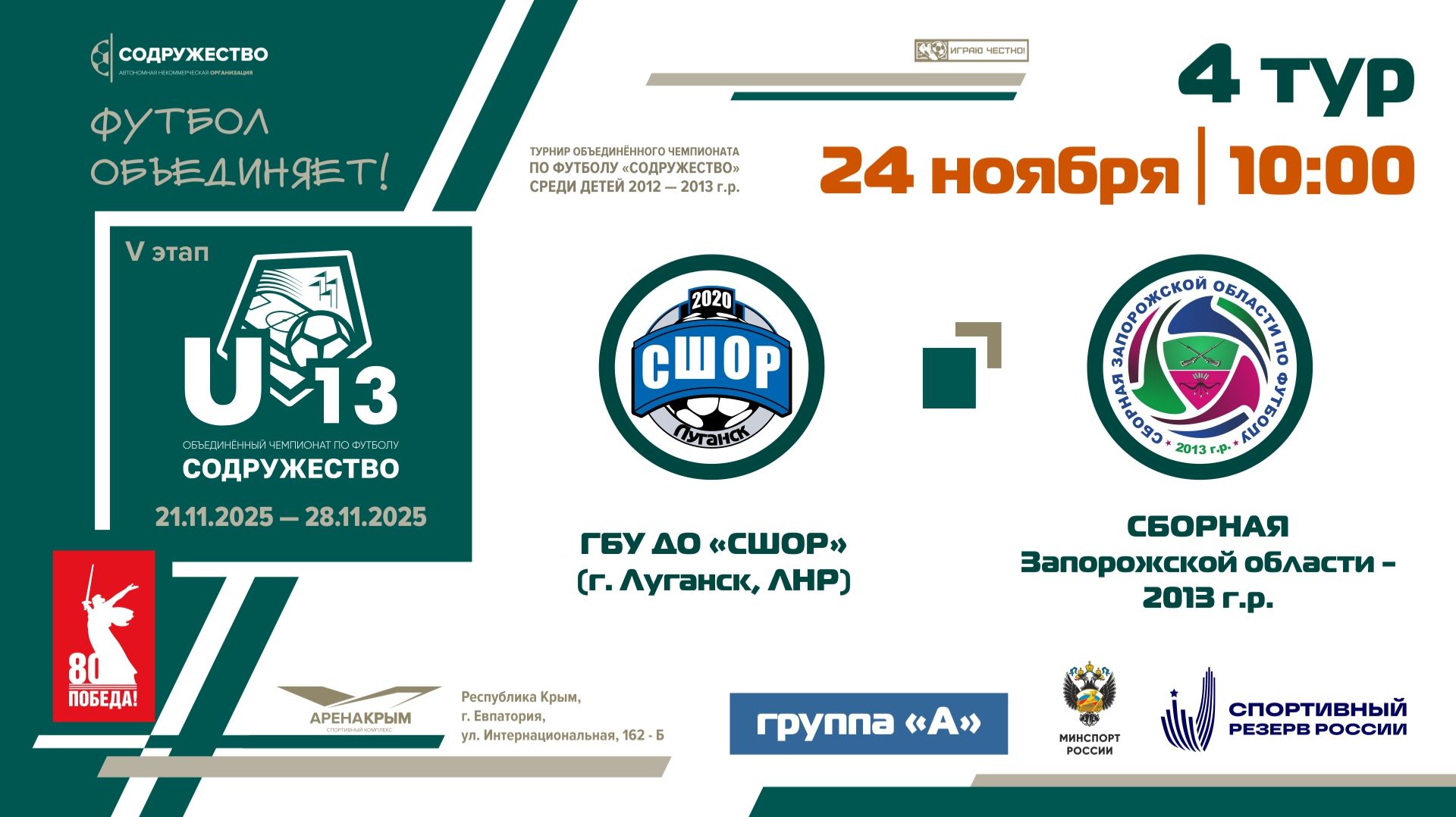 4 ТУР [Группа А] | ГБУ ДО «СШОР» (г. Луганск) - Сборная Запорожской области 2013 г.р. | 24.11.25