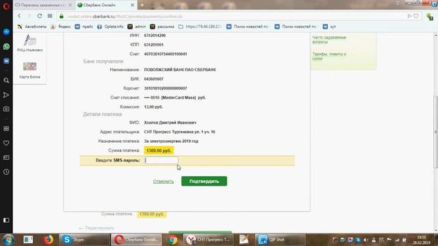 Оплата за эл энергию СНТ "Прогресс" Тургеневка.