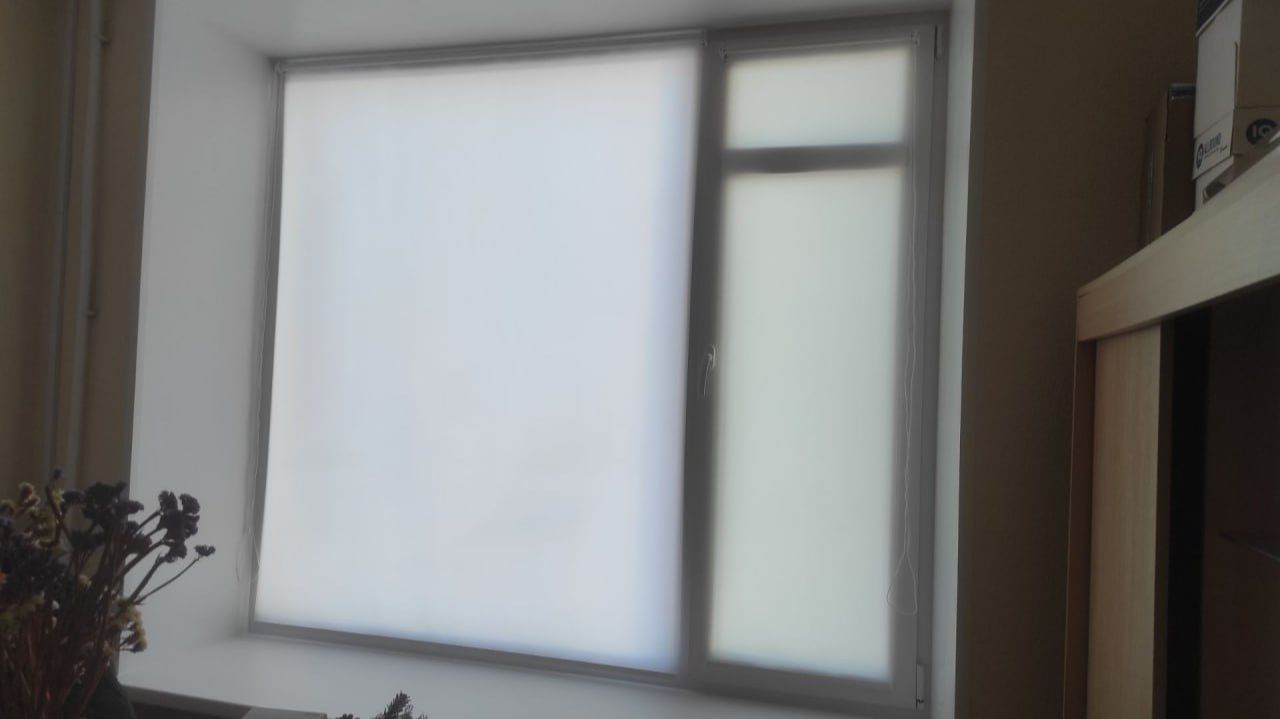 Белые компактные рулонные шторы MINI для защиты от солнца в кабинеты администрации.