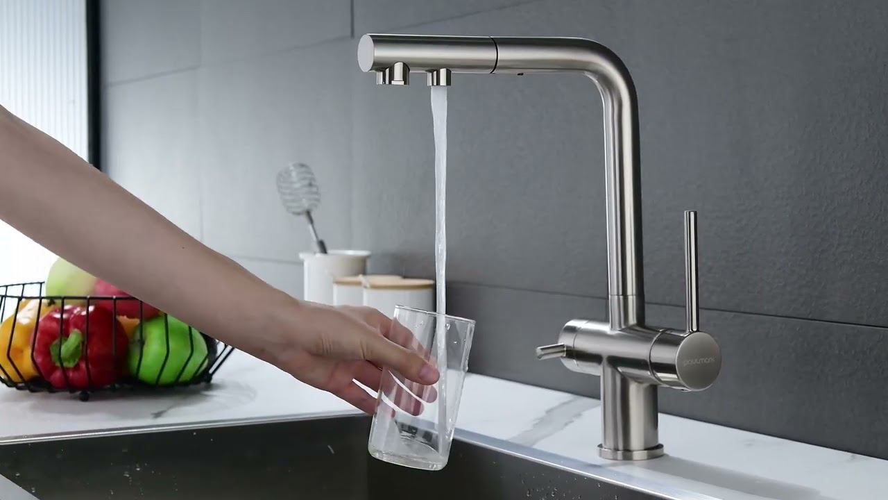 Смеситель Paulmark Serpentine Se213222-NI для кухонной мойки с фильтром для питьевой воды, никель