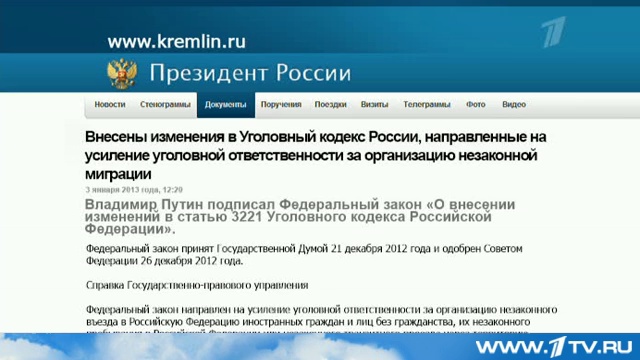 Президент сегодня подписал несколько важных документов, касающихся миграционной политики – внесены изменения в закон о правовом положении иностранных граждан в России. Они касаются обеспечения социально-бытовых гарантий для приезжих специалистов.