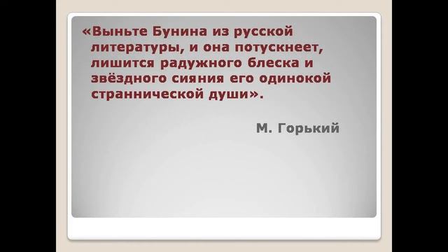 Видео презентация жизнь и творчество И.А. Бунина