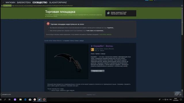 Итак вы увидели что нож можно поучить на копейки,просто подождав и поискав.А если это видео наберёт хотя бы 2 лайка,я выложу скрипт который автоматически купит такой ножик.Удачи!!! Мой VK:https://vk.com/konstantin_bandit Друг! Вступай в мою группу стим! https://steamcommunity.com/groups/spirit_team777