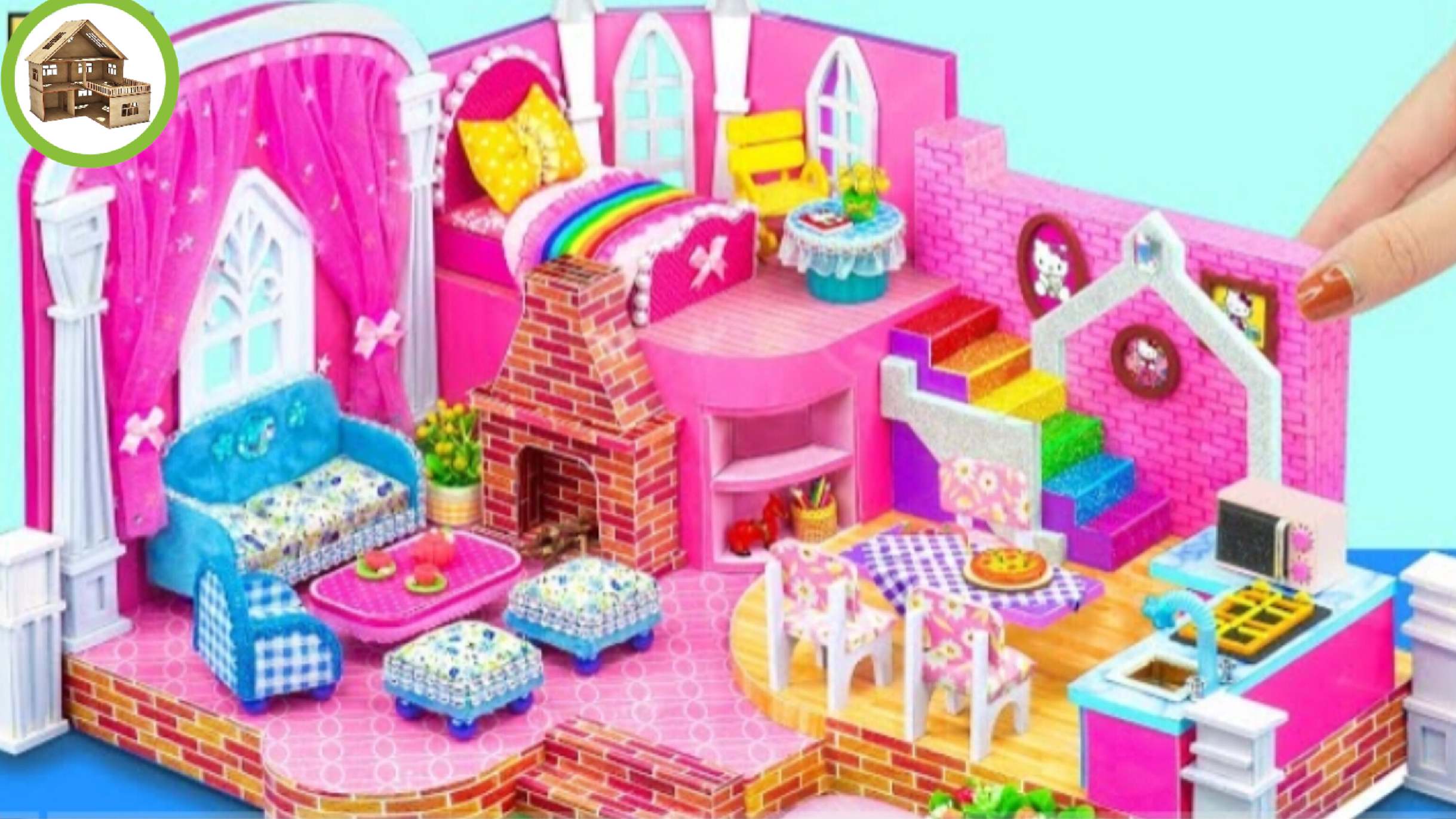 Великолепный розовый дворец с королевскоми комнатами и кухней из картона #93